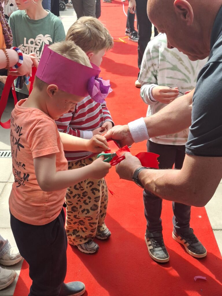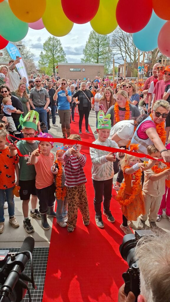 Met het doorknippen van het lint werd het Kindcentrum officieel geopend. ✂️ Daarna kwamen kinderen, ouders, opa’s, oma’s dorpsgenoten en andere geïnteresseerden tijdens het open huis ons gebouw en speelterrein bekijken. We kijken trots terug op een dag vol verbinding en gezelligheid!